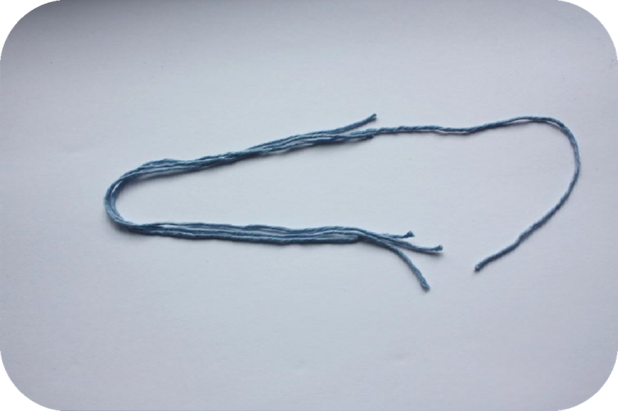 43. Making the tail: cut some yarns, I cut 4 pieces of yarn. One piece of yarn is longer that the others.